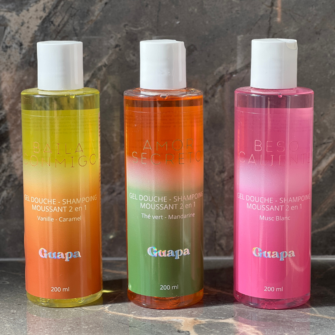 Clean, végan et fabriqué en France, le gel douche Amor Secreto incarne la fraîcheur éclatante et la féminité radieuse de l’univers GUAPA.