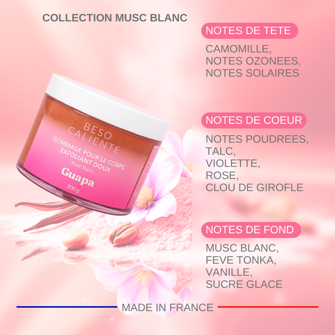 🤍 GUAPA Musc Blanc, un gommage tendre et sensuel qui transforme la beauté en caresse.